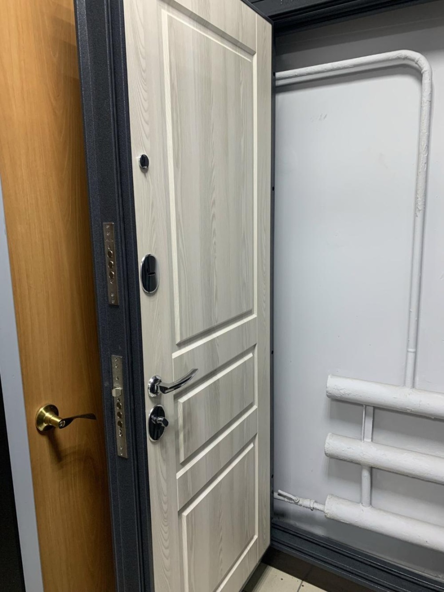 Артикул: Дверь стальная Мастино TRUST ECO 2 Антрацит букле-Ясень ривьера крем 860 правая