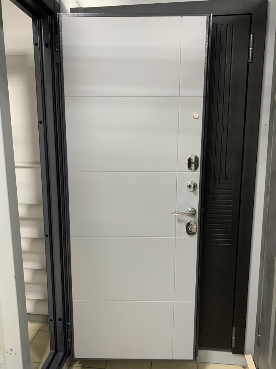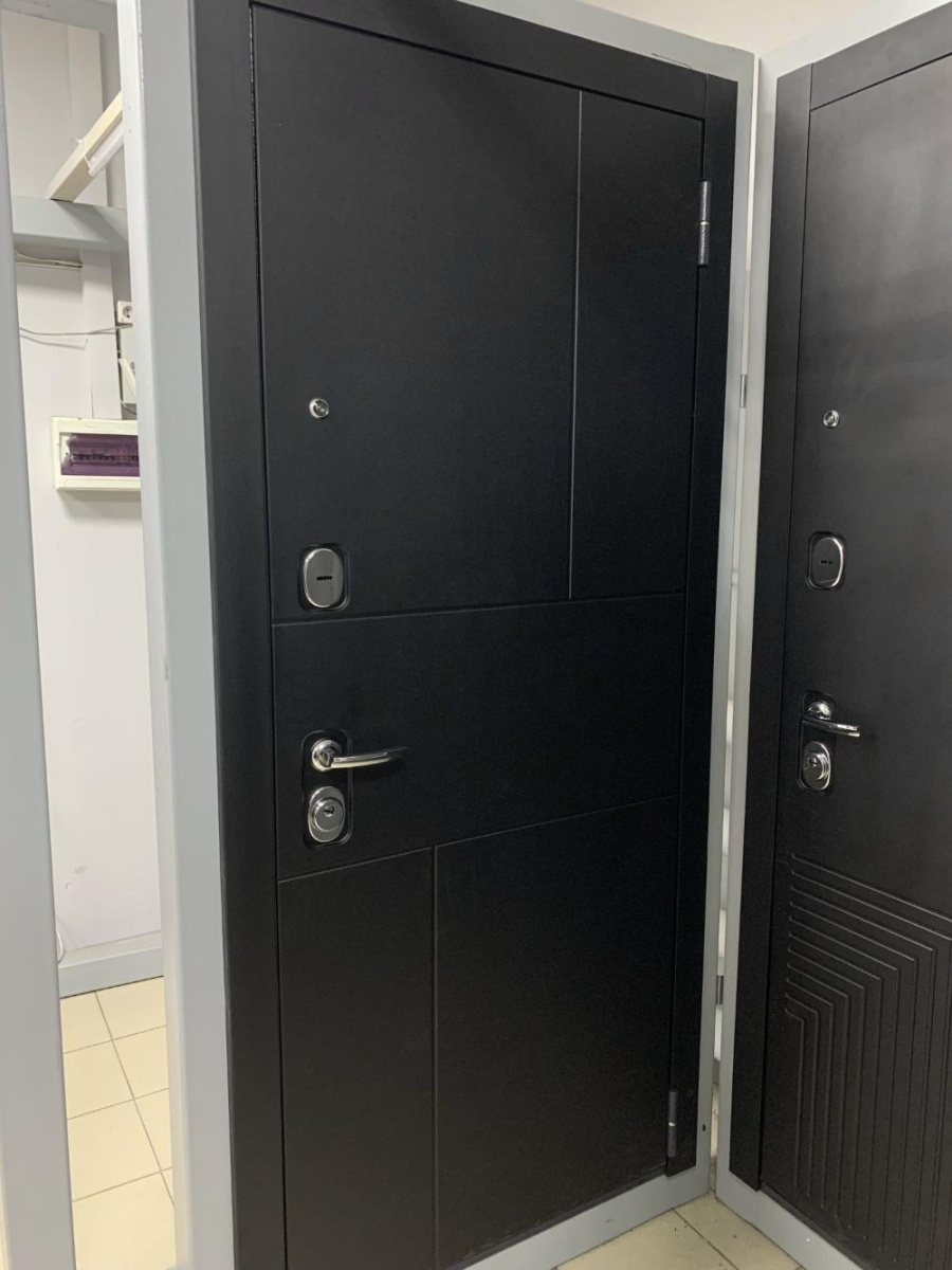 Артикул: Дверь стальная Мастино TRUST ECO 182/193 Черный матовый/Графит букле-Гриджио 860 правая
