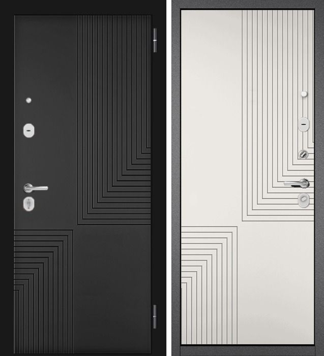 Артикул Дверь стальная Мастино TRUST ECO 195/195 Черный матовый/Антрацит букле-Белоснежный 860 правая