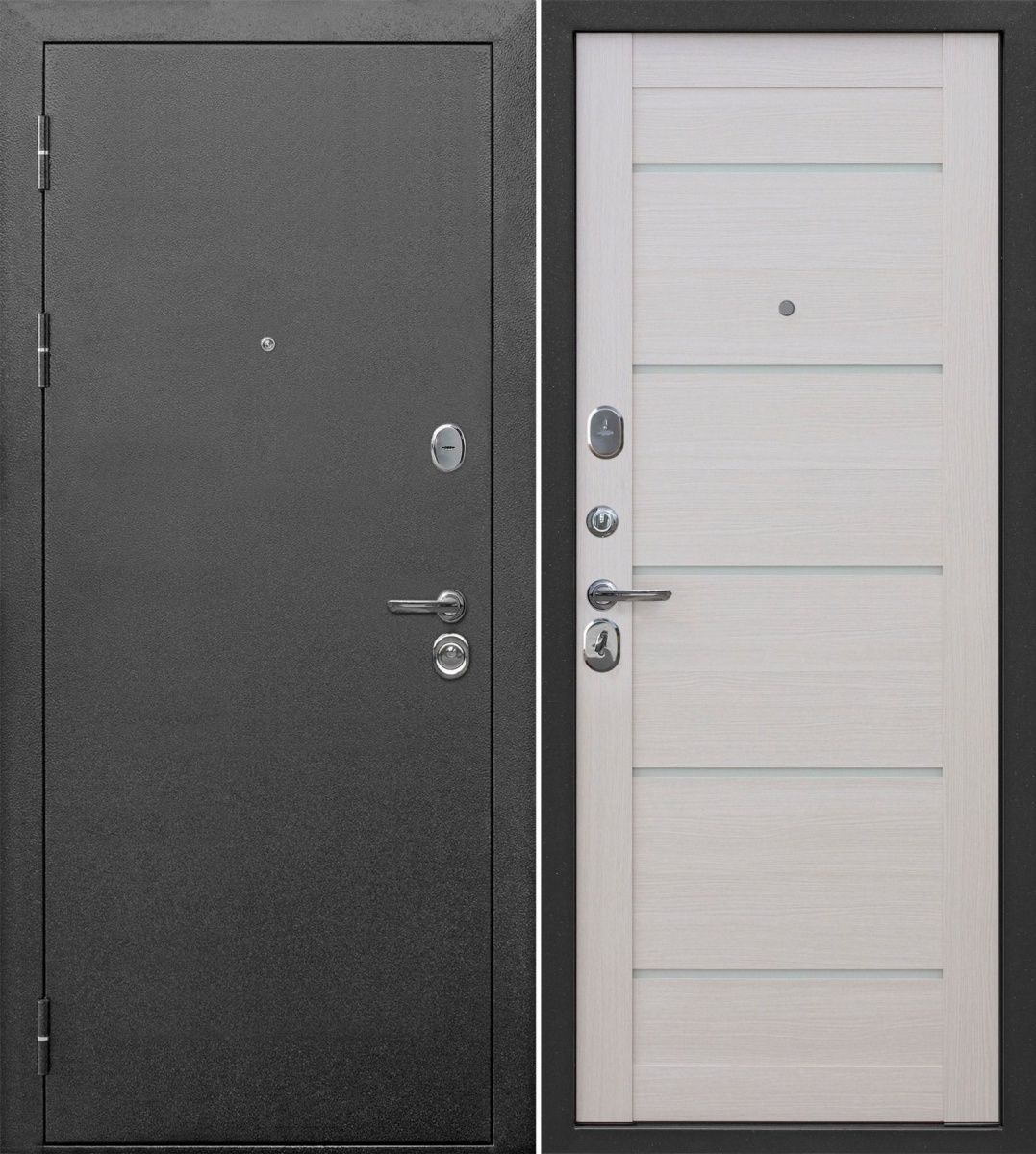 • Накладки: врезная броненакладка основного замка и декоративная накладка дополнительного замка с защитой от сквозняка; цвет сатин. хром