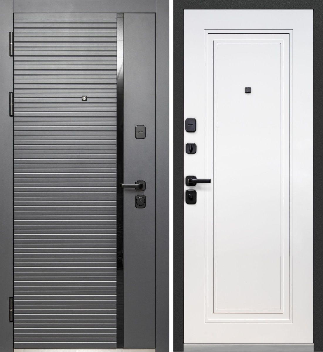 Входная дверь Люксор 2МДФ Горизонталь НЕО Сатин графит - Эмалит белый — купить в Тюмени в компании RosDoor (Сталь-сервис)