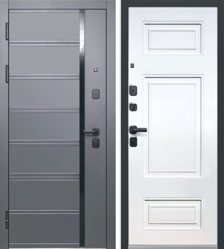 Люксор 2МДФ Куб Нео МДФ Сатин графит со вставкой Черный лакобель - Эмалит белый, Люксор (Luxor) — купить в г. Тюмени в компании RosDoor (Сталь-сервис)