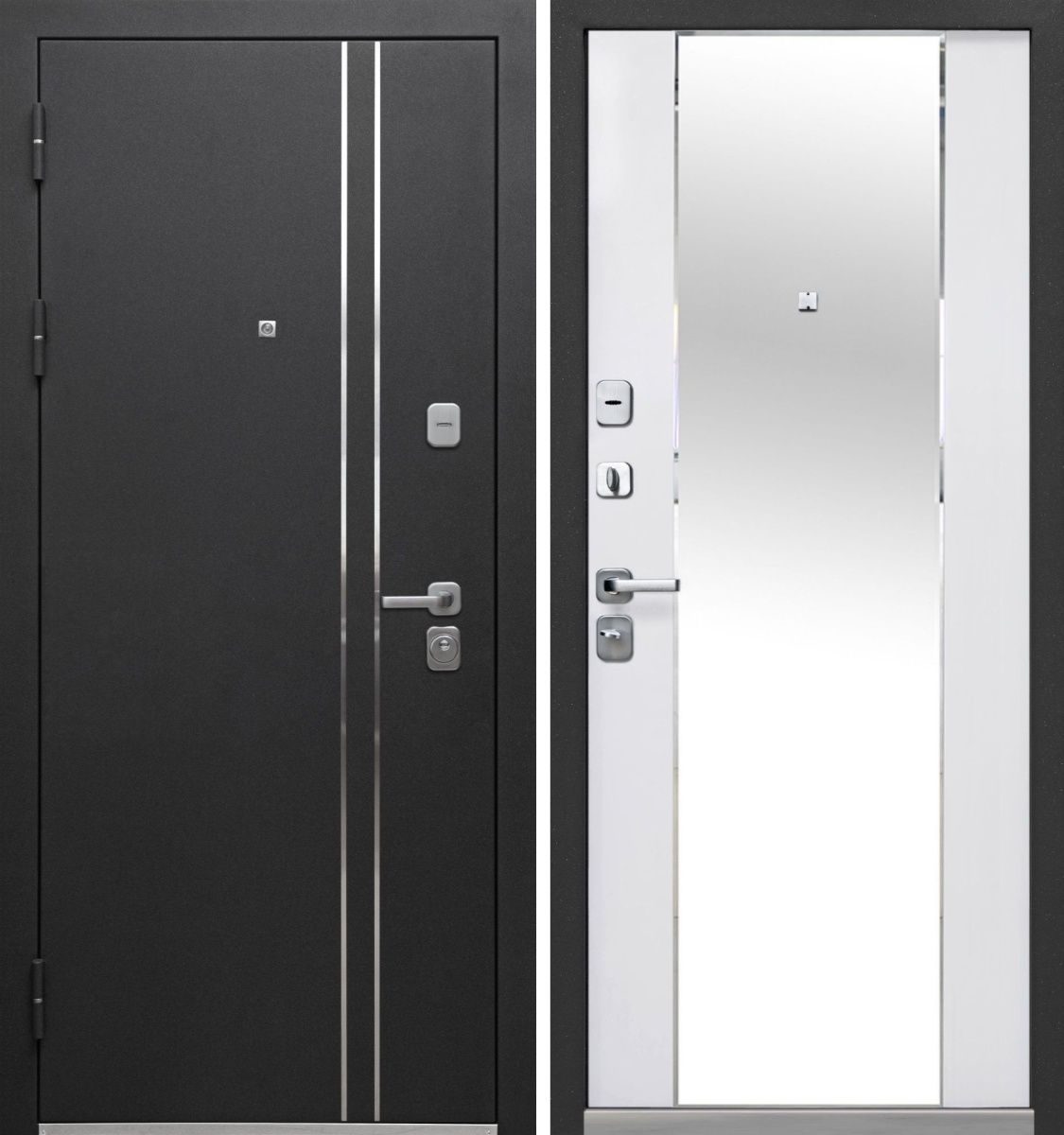 Входная дверь Люксор 2мм Букле антрацит - Зеркало фацет Эмалит белый — купить в Тюмени в компании RosDoor (Сталь-сервис)