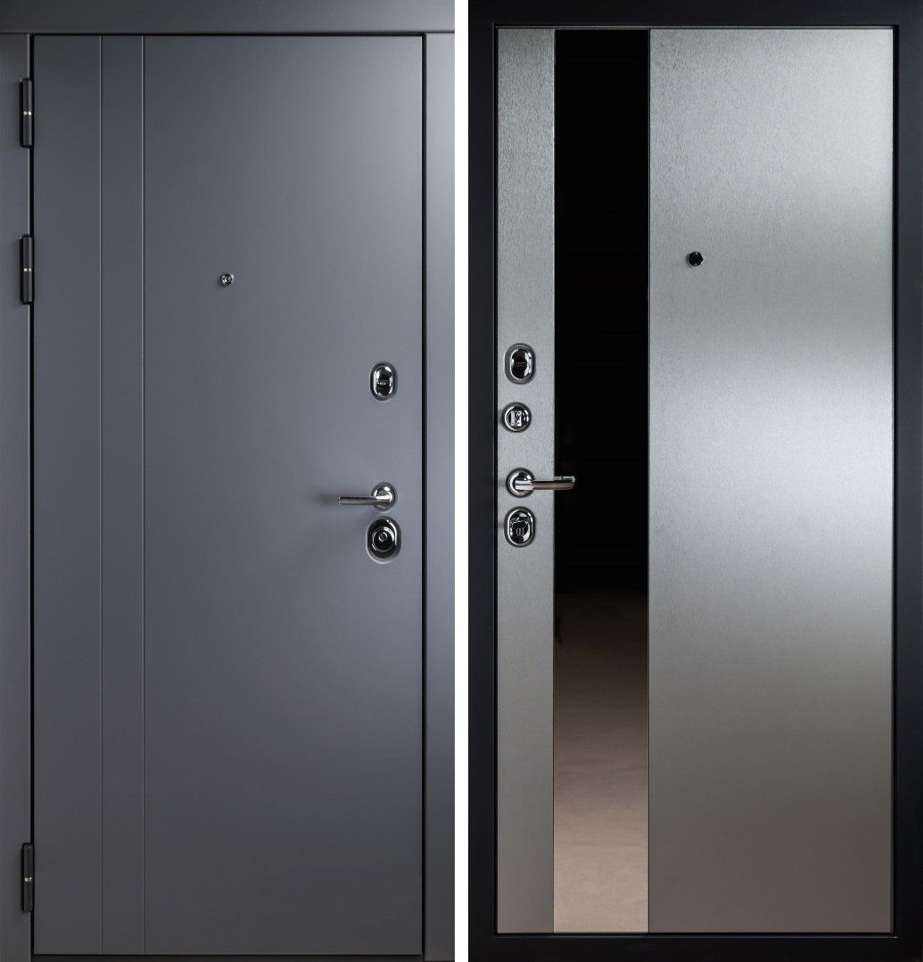 Входная дверь STR (СТР) Входная дверь СТР-17 Силк Титан/Алюминий тисненый с зеркалом — купить в Тюмени в компании RosDoor (Сталь-сервис)